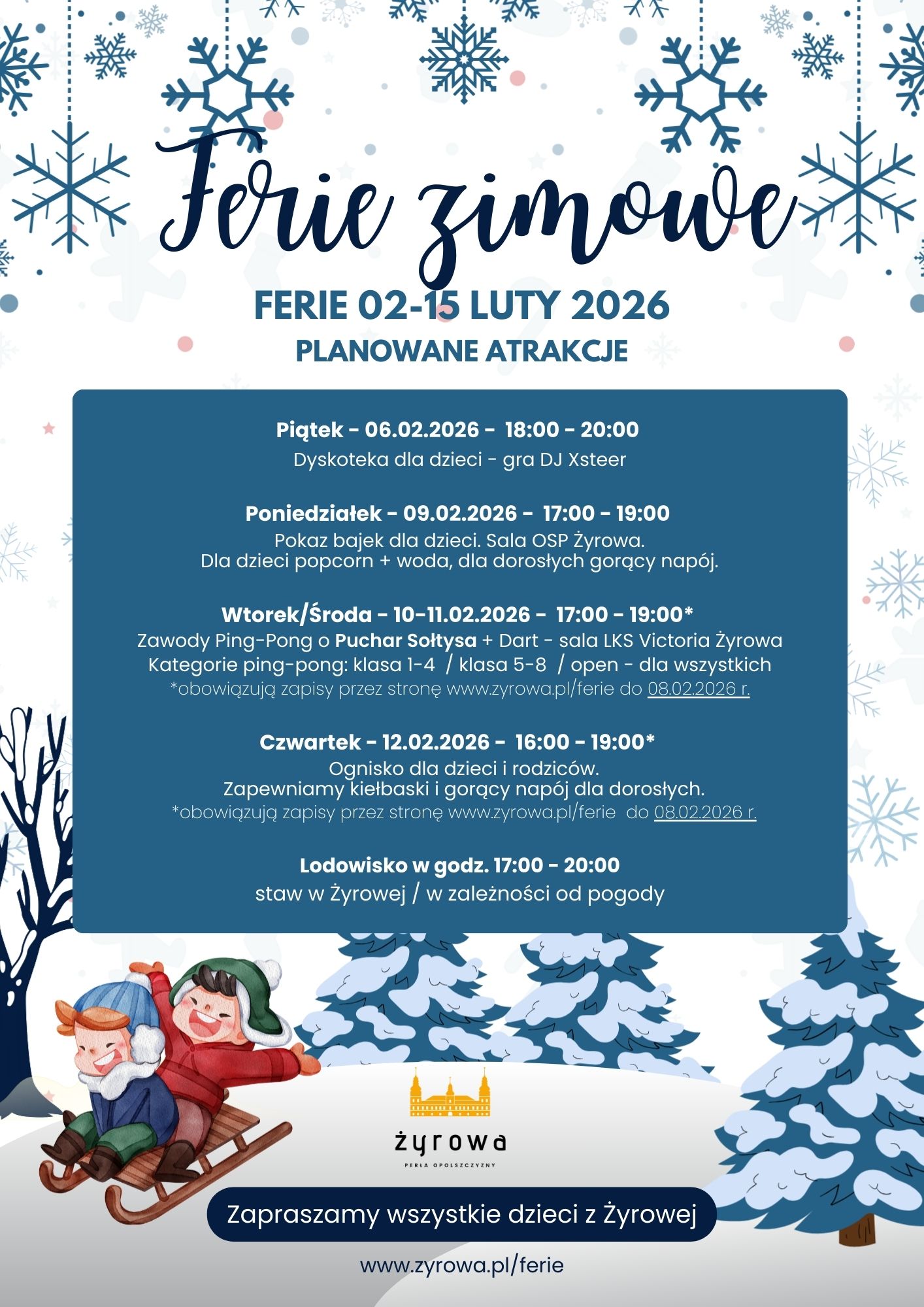 Zapraszamy wszystkich do zapoznania się z planowanymi feriami 2026 w Żyrowej.