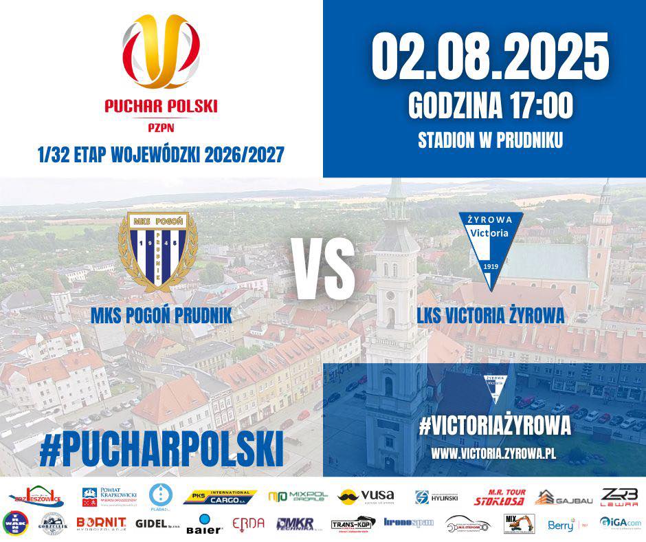 W sobotę 2 sierpnia 2025 r. o godz. 17:00 na stadionie w Prudniku rozegrany zostanie mecz w ramach 1/32 wojewódzkiego etapu Pucharu Polski. Drużyna LKS Victoria Żyrowa zmierzy się z MKS Pogoń Prudnik.